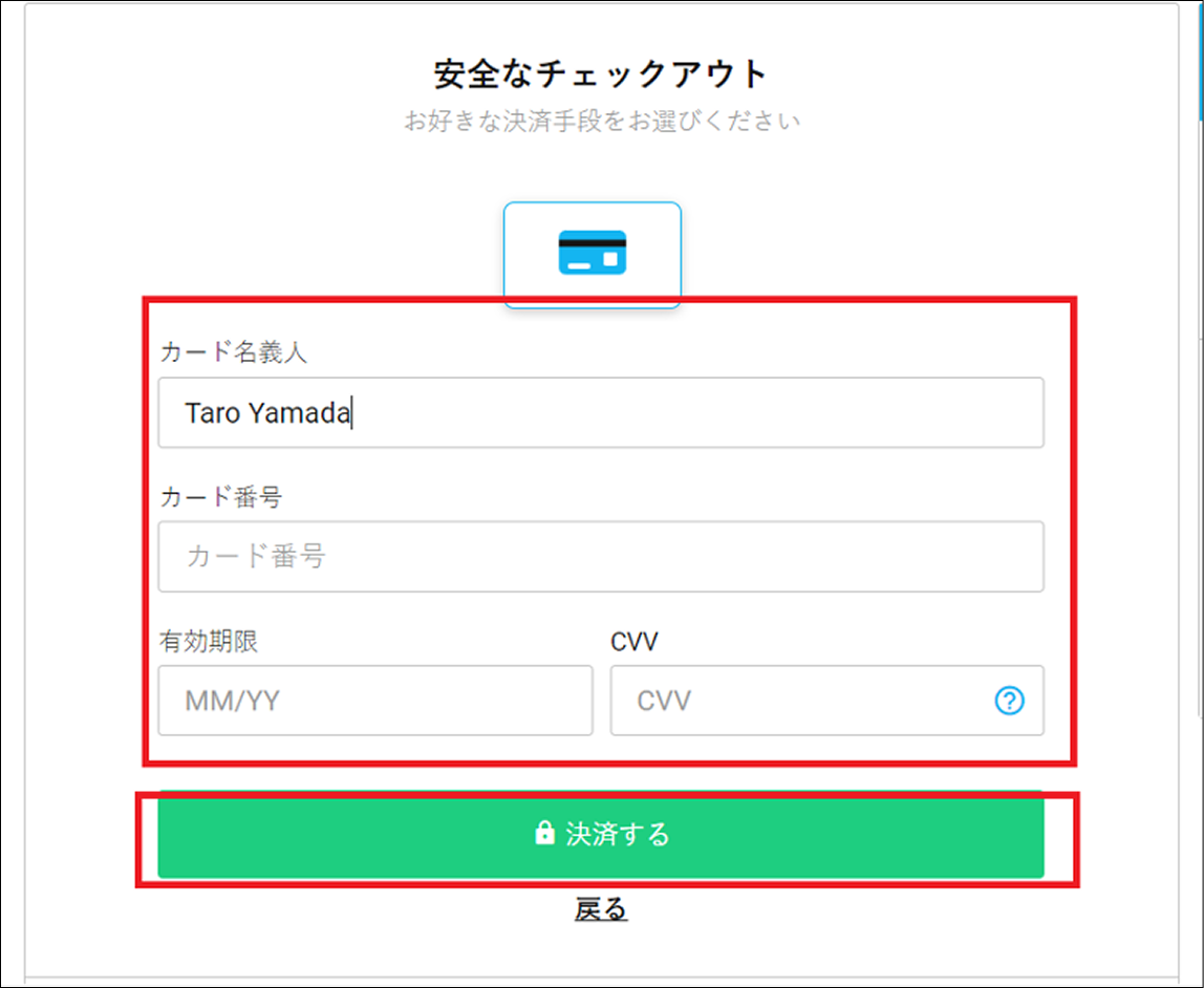 3,下記の画面に移動しますので、カード情報を入力したら「決済する」をクリックしてください。