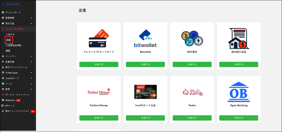 また、入金額までは入金方法と同様の方法で出金する必要があります。