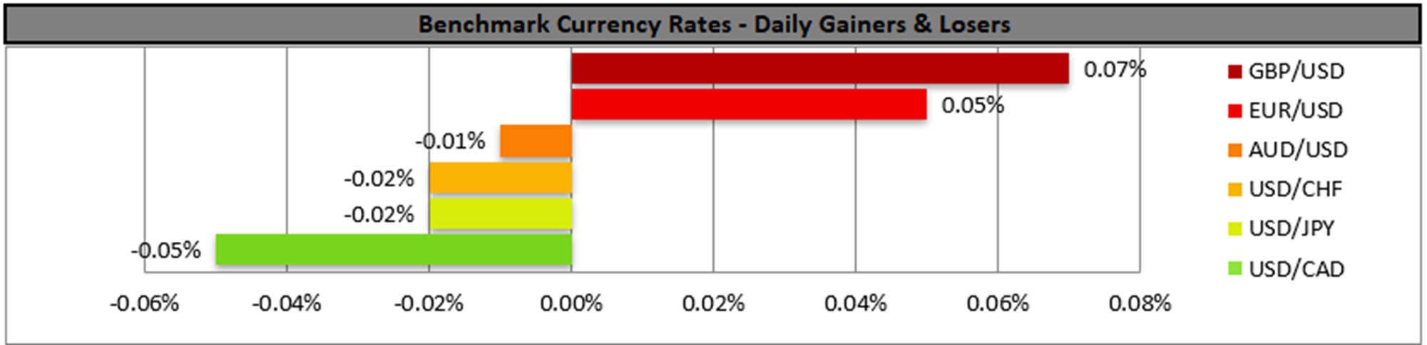 USD/CAD tended to remain relatively stable just below the 1.3880 (R1) resistance line. We maintain a bias for the sideways motion to continue currently given also that the RSI indicator continues to run along the reading of 50 implying a rather indecisive market. Fo a bullish outlook to emerge, we would require the pair’s price action to break the 1.3880 (R1) resistance line and start aiming for the 1.4020 (R2) resistance level. For a bearish outlook to be adopted, we would require the pair to break the 1.3720 (S1) support line and start aiming for the 1.3550 (S2) support base.