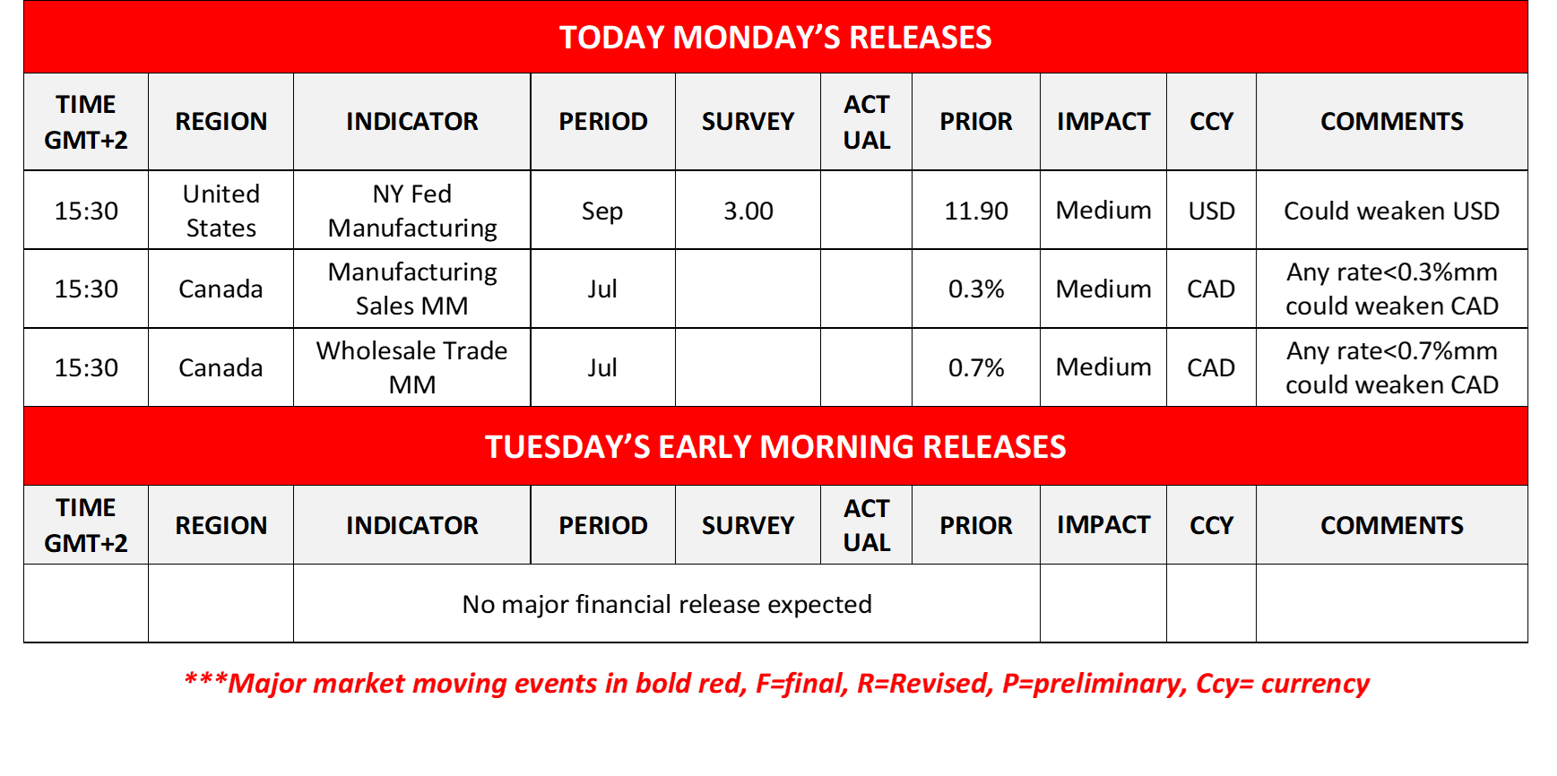 Today, we get the US NY Fed manufacturing index for September and from Canada we get the manufacturing sales and wholesale trade growth rates for July.