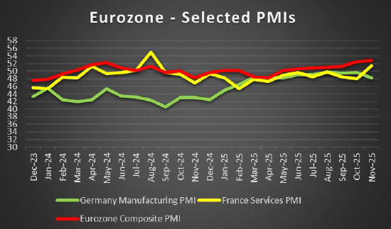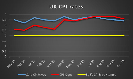 The pound sent some mixed signals in the past week as it strengthening against the USD, and JPY, yet is in the reds against the EUR. In the coming week, we highlight the release of BoE’s interest rate decision, next Thursday as a key event for pound traders. The bank is expected to cut rates by 25 basis points and currently GBP OIS imply a probability of 92.2% for such a scenario to materialise. Yet GBP OIS also imply that the market expects the bank to proceed with another rate cut in 2026, one only, which tends to imply that the market’s expectations for the bank’s intentions continue to lean on the dovish side. We note that the bank is at cross roads as on the one hand, inflation remains high providing hawkish innuendos for the bank, yet on the other hand, growth remains anemic adding pressure on the bank to ease its monetary policy further. Hence should the bank cut rates as expected we intend to turn our focus to the bank’s forward guidance. Should the bank imply in its forward guidance imply that more easing lays ahead for its monetary policy we may see the pound retreating, while a more hawkish tone could provide some support for the sterling. Also we intend to keep a close eye on the votes in favour of a rate cut and the ones favouring the bank remaining on hold as it would allow a deeper insight in the balance of power between doves and hawks. On a macroeconomic level, we note two releases which we consider key. The first would be the release of October’s employment data on Tuesday, and a possibly tighter than expected UK employment market could provide some support for the pound. Also on Wednesday, we get UK’s November CPI rates and a possible acceleration could provide some support for the pound ahead of BoE’s interest rate decision next Thursday.