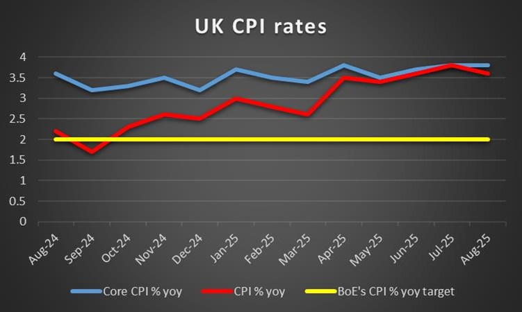 On a fundamental level, pound traders remain worried for the outlook of the UK economy. On a more positive note, the International Monetary Fund seems to be expecting the UK economy to be the second- fastest-growing of the world’s most advanced economies this year, according to new projections. However there are still a number of challenges ahead for the UK economy, including the effect of the US tariffs, the stubborn inflation and BoE’s intentions about its monetary policy. The market focus is on UK Chancellor of the Exchequer Reeves, yet that is still a long way, on the 26th of November. Should market worries for the UK economic outlook intensify we may see them weighing on the pound. For the time being we note on a macro level, that the release of the UK employment data for August were disappointing as the UK employment market loosened further, while the GDP growth rate for August was anemic. In the coming week we note the release of the CPI indicators, yet the main point of interest is expected to be on UK’s CPI rates for September. Should we see the CPI rates accelerate in the past month showing a relative resilience of inflationary pressures in the UK economy, an issue that IMF also warned about, we may see the GBP getting some support as the pressure on BoE not ease its monetary policy but possibly to consider tightening may intensify. Currently market expectations are for BoE to maintain rates unchanged until the end of the year and start cutting rates from Feb26 onwards. For the time being BoE Governor Bailey seems worried for the UK employment market which tends to imply that the Governor is leaning more on the dovish side. Furthermore policymaker Alan Taylor stated that he fears a bumpy landing for the UK economy, enhancing market worries even further. Should we see market expectations for a possible easing of BoE’s monetary policy intensifying in the coming week, we may see the pound slipping lower.